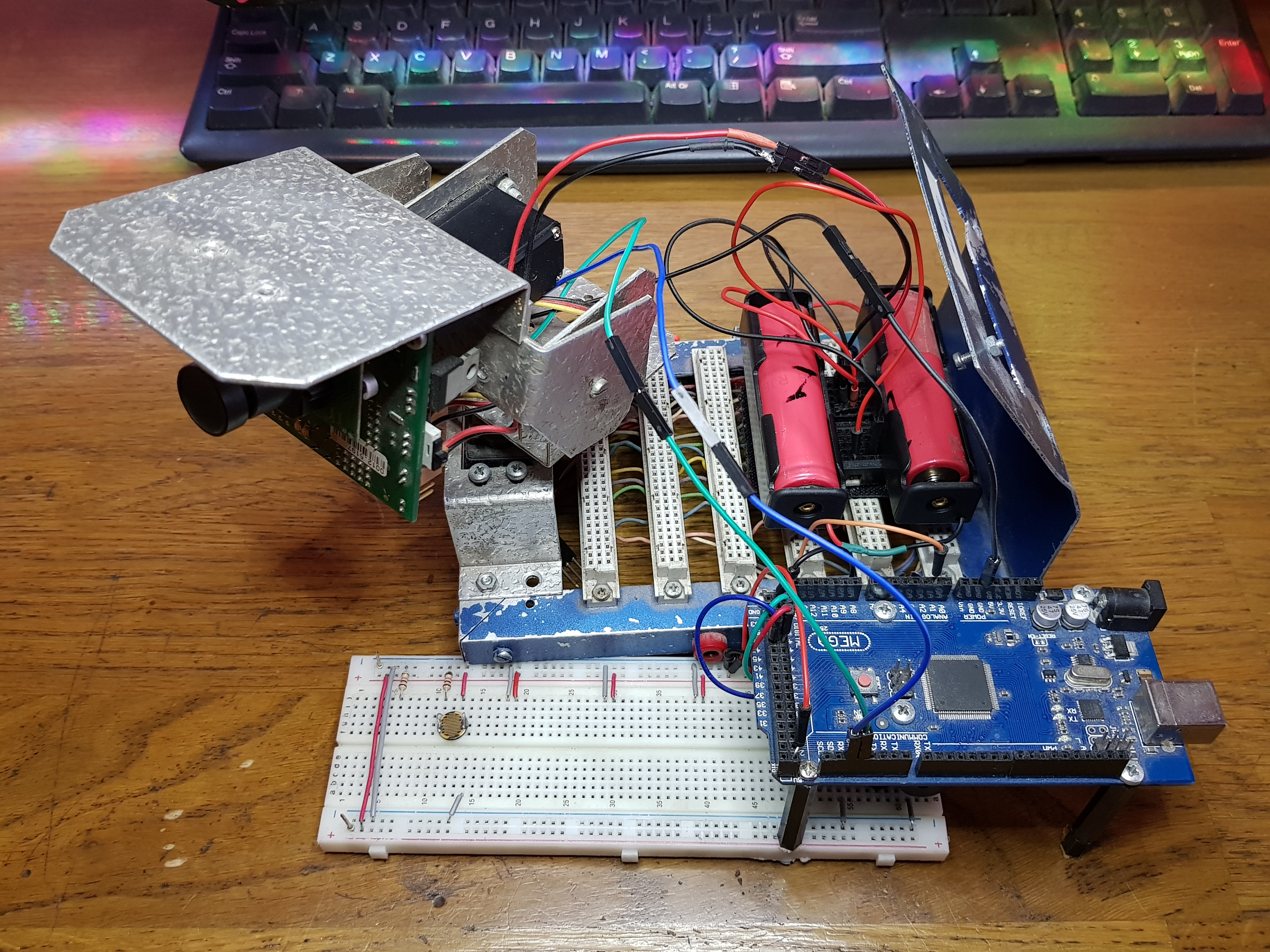 It is an ongoing project (homepage) and has produced 5 versions up till 2016. CMUcam2 is out of production for a while now but a lot of interesting material is available yet. A CMU cam is usually mounted on a pan & tilt module because the CMU board supplied with the cam has some interesting features. The cam is mounted as a shield that fits on the CMU board. The cam shield is a C3088 (datasheet) which uses an OV6620 (datasheet) sensor. This color sensor has a maximum resolution of 356x 292 pixels. The CMUcam2 has an extensive user guide.