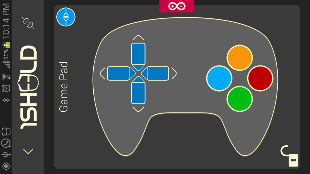 This Gamepad is a 1Sheeld feature. It works fine, but a Samsung S2 is a bit too small. This is more for a tablet. The sketch proved that the serial communication between 2 Arduino`s is working.