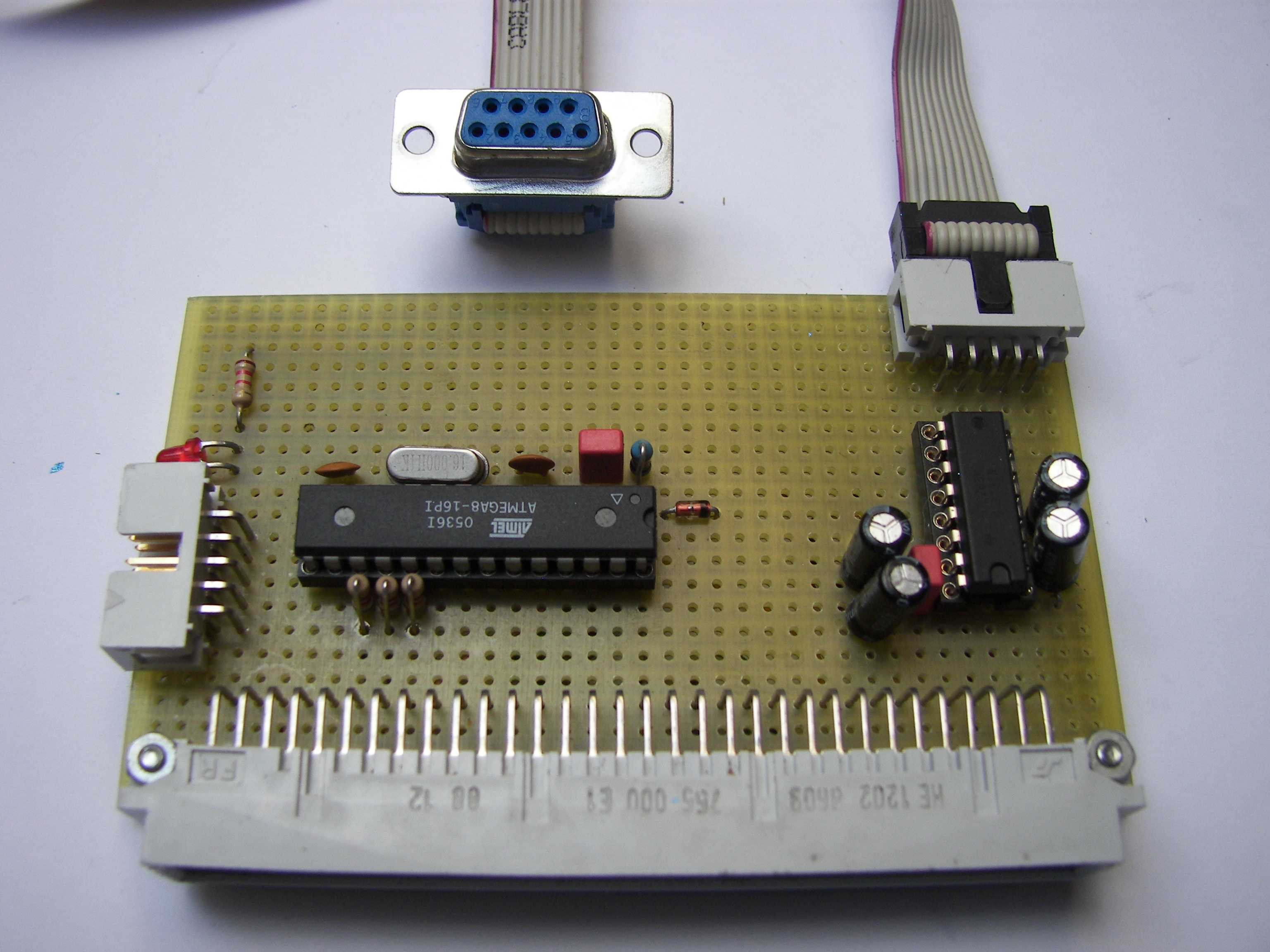 Als u µcontrollers onderling wilt laten communiceren via het RS232 protocol dan kunnen de betreffende pennen van beide µcontrollers rechtstreeks met elkaar worden verbonden. De werkspanning is dan gelijk aan de voedingsspanning van de controllers, meestal 5Vdc. Een RS232 verbinding met een ander apparaat zoals bijvoorbeeld een PC heeft echter een werkspanning van 12Vdc. Daardoor kan er een vrij grote afstand (maximaal 15m - 100m) worden overbrugd zonder storingen. U hoeft echter geen 12Vdc tot uw beschikking te hebben in uw project, want voor die omzetting zorgt een MAX232 chip. Deze chip moet u tussen de µcontroller en de PC monteren. De STK500 heeft standaard al een extra MAX232 geinstalleerd waardoor u enkel nog deze extra seriële poort hoeft aan te sluiten op uw PC en een 2-polig kabeltje op uw STK500. Maar ook het zelf bouwen van een RS232 interface is niet bijzonder ingewikkeld. Dit kan zelfs op een breadboard. De benodigde schakeling staat tot in de kleinste details beschreven in de datasheet.