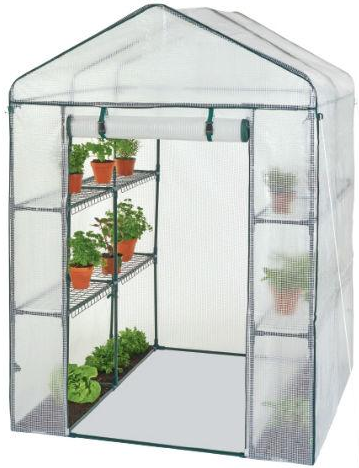 Na 2 seizoenen is het omhulsel van dit kasje (140lx140bx200h)) versleten op de hoeken door de wind. Helaas niet meer leverbaar. Vervangen door een steviger hobbykas.