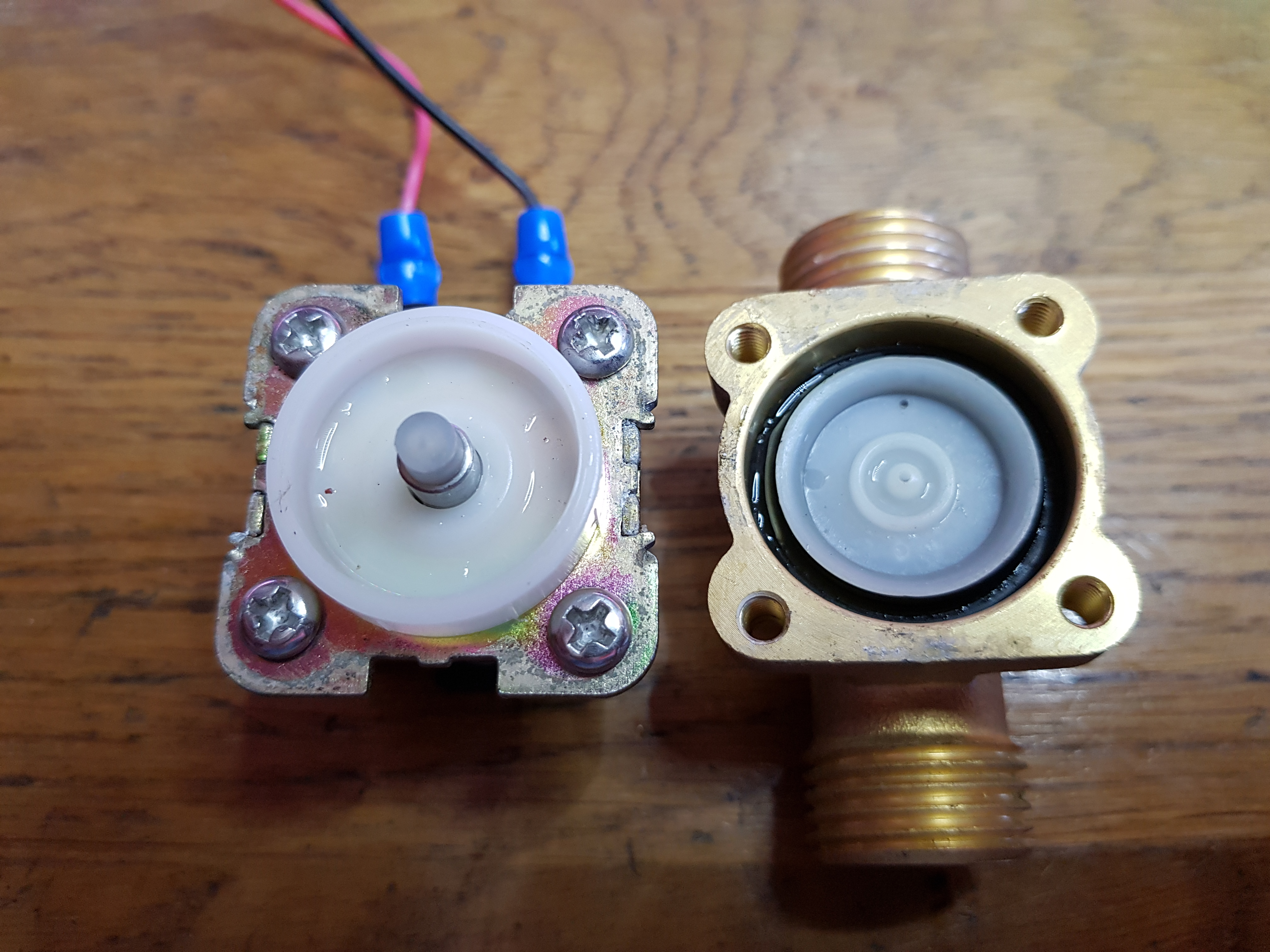 Het mechanisme is te zien op de opengewerkte afbeelding. Het werkt nog steeds via een membraan. Het werkt de eerste weken uitstekend. Daarna heeft de installatie 2 maanden stilgelegen en vervolgens werkt de waterklep niet meer. Het gedraagt zich alsof het mechaniek van binnen verroest is. Of misschien kalkafzetting kent oid. Het lijkt verdacht veel op een eerder probleem met een dompelpomp. Het blijkt een algemeen probleem te zijn met dit soort kleppen.