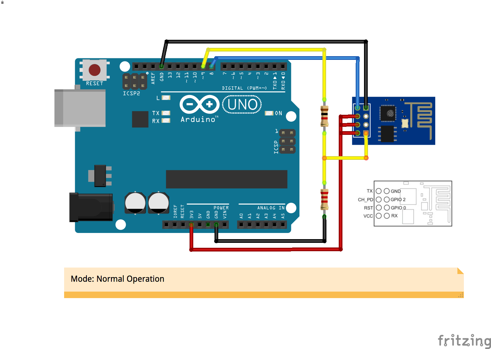 Er bestaat een Beginners guide to the ESP8266. Het is verwarrend dat de namen ESP01 en ESP8266 door elkaar worden gebruikt. Dit printje bevat een ESP8266 µcontroller. Maar het printje bevat ook nog een Wifi chip en dan heet het hele printje ESP01. Het printje kan op meerdere manieren worden gebruikt (zie ESP01). Op deze pagina wordt beschreven hoe u de module kunt gebruiken als Wifi module aan uw Arduino. Er zijn verder nog 2 weerstandjes nodig om een spanningsdeler te maken aan de ingang van de ESP8266 (2k2Ω en 1kΩ). Dit is nodig omdat de ESP8266 op 3,3Vdc werkt. Verder kan de ESP01 rechtstreeks op een Arduino worden aangesloten. WifiEsp blijkt de enige library die de regie op de Arduino houdt en de ESP01 als module gebruikt.