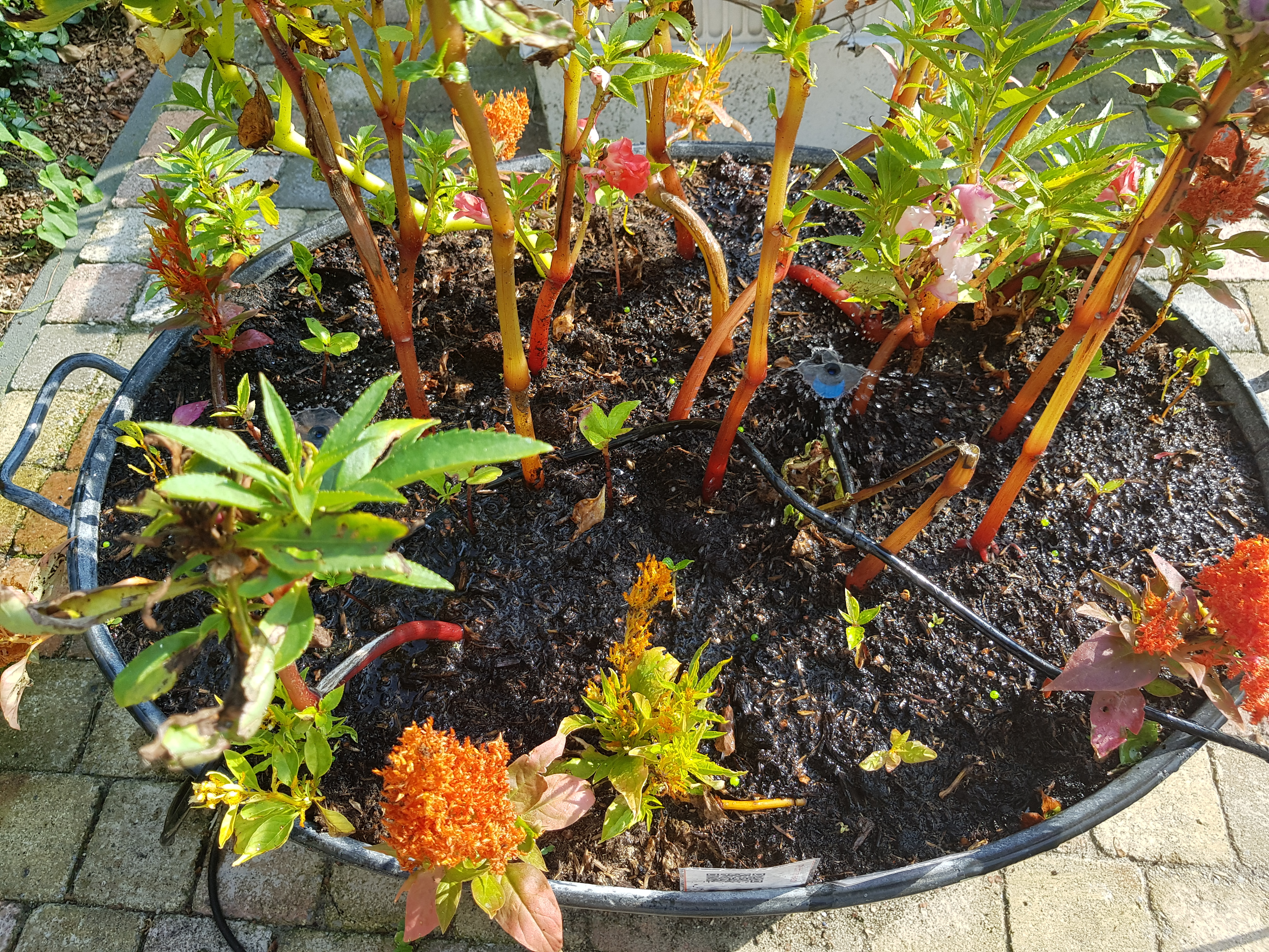 Bedoeld voor de binnenkant van de heg aan de straatkant. Kenmerk: Nooit zon, wel warm. Gezocht naar een bodembedekker. Schildzaad deed het niet echt goed door te weinig zon.