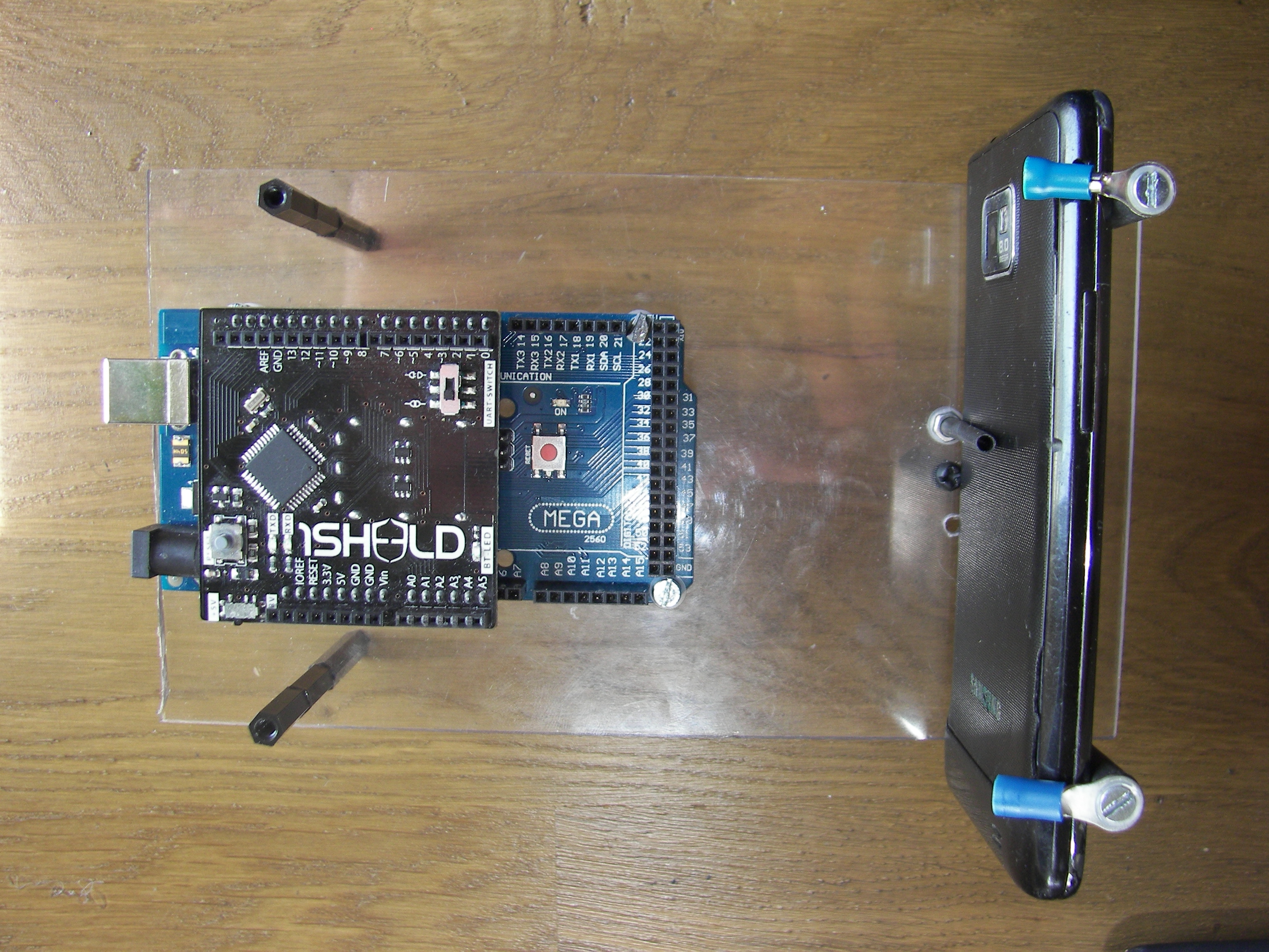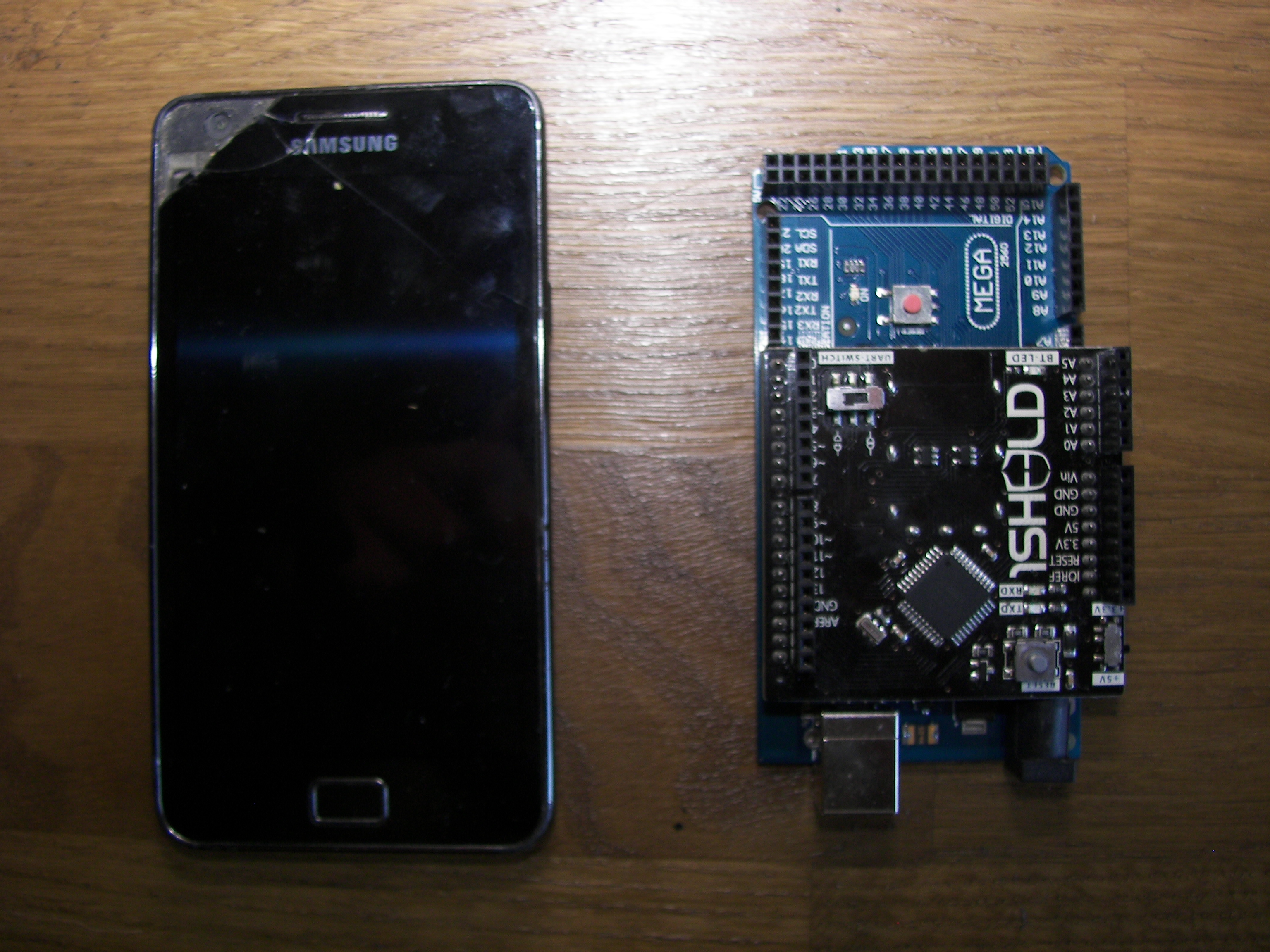 1sheeld is a shield that extends your Arduino board with the sensors and actuators of your mobile phone. 1Sheeld connects to your phone using Bluetooth. Supports iOs and Android versions starting 4.0 and up only. You can use your mobile for example as game-pad or as a steering wheel or have your robot talking to you. We will use it for example as an extended interface between the cockpit and any mobile robot.