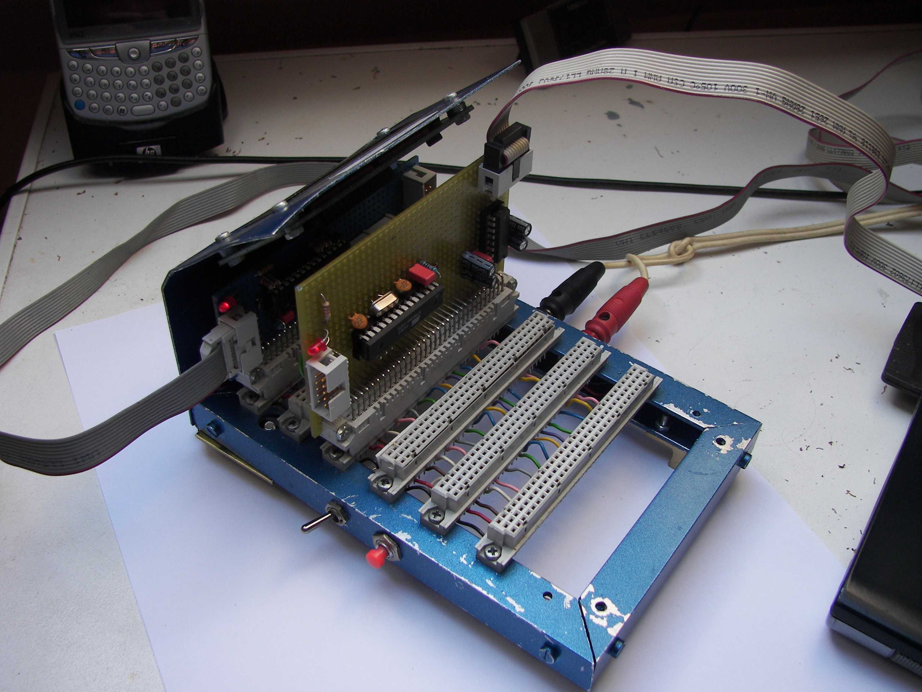 Verder bevat de opbouw van mr Blue aan de zijkant nog een enkelpolig-om schakelaar. Deze schakelaar verbindt SSA-Bus pin 3 (voeding SSA-Bus, rood) met: