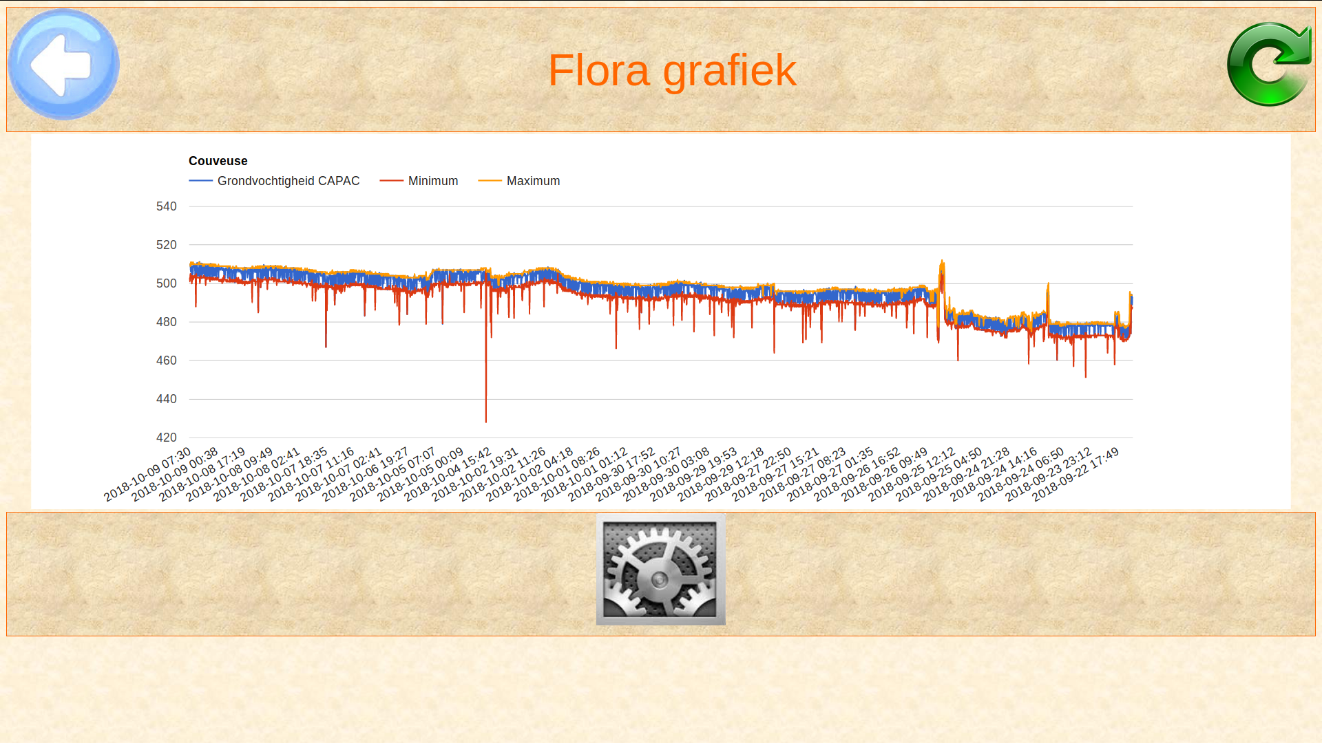 Kan er een pin omhoog (of omlaag) getrokken worden, voor als er helemaal niets is aangesloten? Het blijkt: des te vochtiger de grond, des te lager de meetwaarde, dus des te lager het afgegeven voltage. Wat willen we als er niets is aangesloten? 0 of 1023 als meting?