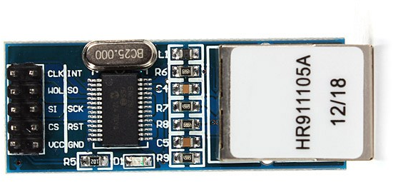 De ethernet aansluiting wordt verzorgd door een Lan ENC28J60 module. Het verloopblokje blijkt niet te werken met deze module.