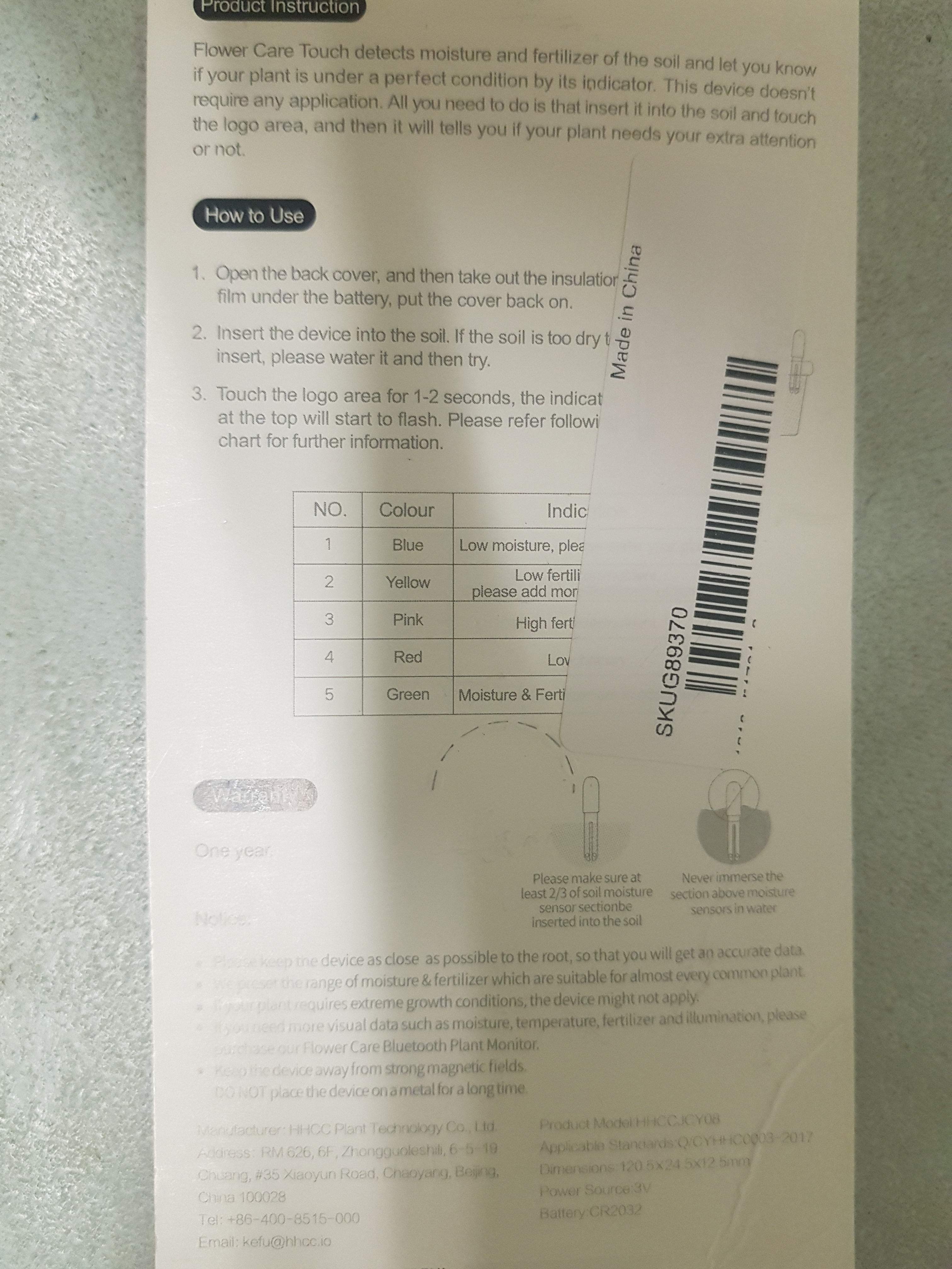 Deze 4in1 sensor van Mi flora (Xiaomi) meet grondvochtigheid, voedingsstoffen temperatuur en licht. De kant met het ledje is de BLE kant dus niet de kant met het logo. Eerste kennismaking Let op: er bestaan 2 verschillende versies van deze sensor in dezelfde behuizing: Versie zonder bluetooth Deze versie heeft een zwarte behuizing en wordt in de grond gestoken. Na een stabilisatie periode van 5 minuten kan je het knopje op de behuizing aanraken. Er zal dan bovenop de behuizing een lampje gaan knipperen. Aan de kleur van het lampje kan je de vochtigheid en voedingsstoffen concentratie aflezen. Versie met bluetooth De volledige naam op Banggood is [Global Version] Flora 4 In 1 Flower Plant Light Temperature Tester Garden Soil Moisture Nutrient Monitor from xiaomi youpin . In eerste lijn is deze sensor bedoeld om te werken met je telefoon (geen Windows). In de meegeleverde handleiding zit een QR code met een link naar de Google Play store. Deze link brengt je naar een app die je moet installeren. Na registratie met een email adres werkt het geheel op een Android telefoon. De sensor verzameld de data van zijn metingen. Iedere keer als je met je telefoon dan via BLE contact maakt met de 4in1 sensor dan worden de gegevens allemaal doorgezet naar je mobiel. Aldaar kan je ze dan bekijken met de meegeleverde app. Iedere keer als je contact maakt met de 4in1 sensor zal er bovenin de sensor kort een bescheiden wit ledje oplichten. Deze gegevens kunnen overigens ook via zelfgeschreven programma`s worden uitgelezen. Batterij De batterij is een lithium knoopcel type CR2032. Met een schroevendraaier de halve behuizing er voorzichtig af lichten. Vervolgens met dezelfde schroevendraaier de batterij er uit wippen. Nu hoop ik dat u gekeken had hoe hij er in zat want hij moet er uiteraard weer precies zo in. Indien de 4in1 sensor niet wordt afgevraagd dan worden de data cached en de batterijwaarde wordt 1 keer per dag updated. Als de batterij leeg is stopt het programma alsof het klaar is, zonder waarschuwing dat hij er mee stopt. 4in1 BLE gebruik Arduino / ESP Een uitgebreide uitleg van Bluetooth LE is te vinden op Arduino.cc en RandomNerdTutorials. Deze sensor is uitgerust met bluetooth 4.1. Dat betekent voor de Arduino/TTGO kant dat je dan minimaal BLE versie 4 moet hebben. Je kan deze sensor ook integreren in Domoticz op bijvoorbeeld een Raspberry Pi 4B. Je kan meerdere 4in1 sensors aansluiten op 1 node. Ze onderscheiden zich in hun mac adres. Daar heb je wel de Mac adressen van je 4in1`s voor nodig. Doe: sudo hcitool lescan Ri01 C4:7C:8D:6B:5F:5C Ro01 80:EA:CA:89:4D:16 TTGO T-beam (Arduino IDE) Bij RandomNerdTutorials vind je een mooi voorbeeld. Onze afgeleide software voor de Arduino IDE is te downloaden als FlorigsT-Beam.zip of Download in 1 keer de totale bundel software als Rnt.zip. 4in1 <=> TTGO T-Beam <=> Wifi mqtt BLE werkt over een afstand van slechts enkele meters. Bij gebruik in de tuin van de 4in1 sensor is het daarom noodzakelijk om een soort tussenstation te gebruiken. Een boardje met een ESP32 is daarvoor uitermate geschikt omdat deze standaard zowel BLE als WiFi aan boord heeft. Software op het internet Overzicht programma`s 4in104.ino Het originele voorbeeld is te vinden bij Siddy. Dat programma heeft een aparte config.h. In deze sketch is de aparte config.h opgenomen in het hoofdprogramma zodat er slechts 1 sketch overblijft. 4in105.ino Dit programma is in wezen hetzelfde als het bovenstaande enkel is er een OLED beeldscherm toegevoegd. Probleem met werkgeheugen TTGO T-Beam Deze sketch heeft minimaal 1,6 MB aan programmageheugen nodig.. https://sites.google.com/site/jmaathuis/arduino/lilygo-ttgo-t-display-esp32 zoek partitioning On Arduino IDE this can be achieved using "Tools -> Partition Scheme -> No OTA". Enkel is deze optie niet aanwezig voor de T-Beam V1.0 maar wel bij de generieke ESP32 Dev Module. 4in1 BLE Raspberry Pi De Raspberry Pi is ook geschikt om in BLE te communiceren (toelichting). Er bestaan meerdere voorbeelden (voorbeeld1, voorbeeld2, voorbeeld3) maar Thomas Dietrich biedt een uitstekende kant en klare oplossing in Python. In ons geval is het geheel aangepast to /home/pi/Python/miflora-mqtt-daemon-master/miflora-mqtt-daemon.py. Daar heb je wel de Mac adressen van je 4in1`s voor nodig. Zet Bleutooth aan Op de Raspberry Pi kan dit rechts bovenin in de taakbalk. sudo hcitool lescan Dit geeft de Mac adressen. Ri01: 4in1wit = C4:7C:8D:6B:5F:5C Ro01: 4in1grijs = 80:EA:CA:89:4D:16 Pas de config.ini aan. Hernoem de config.ini.dist en voeg bovenstaande regels in. De rest met verstand aanzetten. cd /home/pi/Python/miflora-mqtt-daemon-master/ Ga naar de directory van de app. sudo pip3 install -r requirements.txt Installeer alle dependencies van Python. python3 /home/pi/Python/miflora-mqtt-daemon-master/miflora-mqtt-daemon.py Start de applicatie. 4in1 <=> T-Beam <=> TTN Dit kan op meerdere manieren. Siddy (BLE WiFi mqtt) Kant en klaar lijkt er maar 1 voorbeeld (Siddy) te vinden. Siddy zet de gegevens door via mqtt over WiFi. Het originele programma is echter te groot voor het werkgeheugen van een T-Beam. Uitbreiding werkgeheugen voor Arduino programma`s Hoe zit dat? Of het geheugen vergroten in de partitie tafel, maar echt veel groter lijkt daar ook niet mogelijk. Verkleinen door misschien andere bibliotheken te gebruiken? Ach eerst maar gewoon zonder WiFi en dat blijkt in de seriele monitor te werken als een zonnetje. Uiteindelijk willen we geen WiFi maar LoRa. The sketch does not fit into the default arduino partition size of around 1.3MB. You`ll need to change your default parition table and increase maximum build size to at least 1.6MB. On Arduino IDE this can be achieved using "Tools -> Partition Scheme -> No OTA". Enkel is deze optie niet aanwezig voor de T-Beam V1.0, dus daar zal het anders zijn georganiseerd. Al met al is het uitbreiden van het beschikbare werkgeheugen niet mogelijk. Uitbreiding werkgeheugen voor programma`s Misschien schept het flashen met een ander OS 